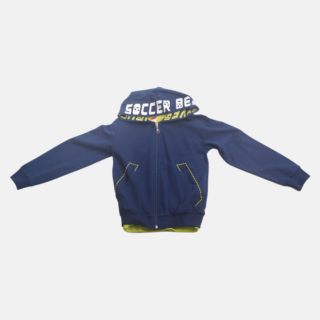 Σετ φόρμα τριών τεμαχίων της εταιρίας JOYCE αποτελείται από αχνούδιαστο παντελόνι, ζακέτα λεπτή με στάμπα, κουκούλα και κοντομάνικο μπλουζάκι.