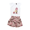 Σύνολο σετ με φλοράλ σορτς και μπλούζα με στάμπα της εταιρίας RESTART.