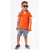 Σετ βερμούδα σταμπωτή με τιράντες και κοντομάνικο polo μπλουζάκι της εταιρίας HASHTAG.